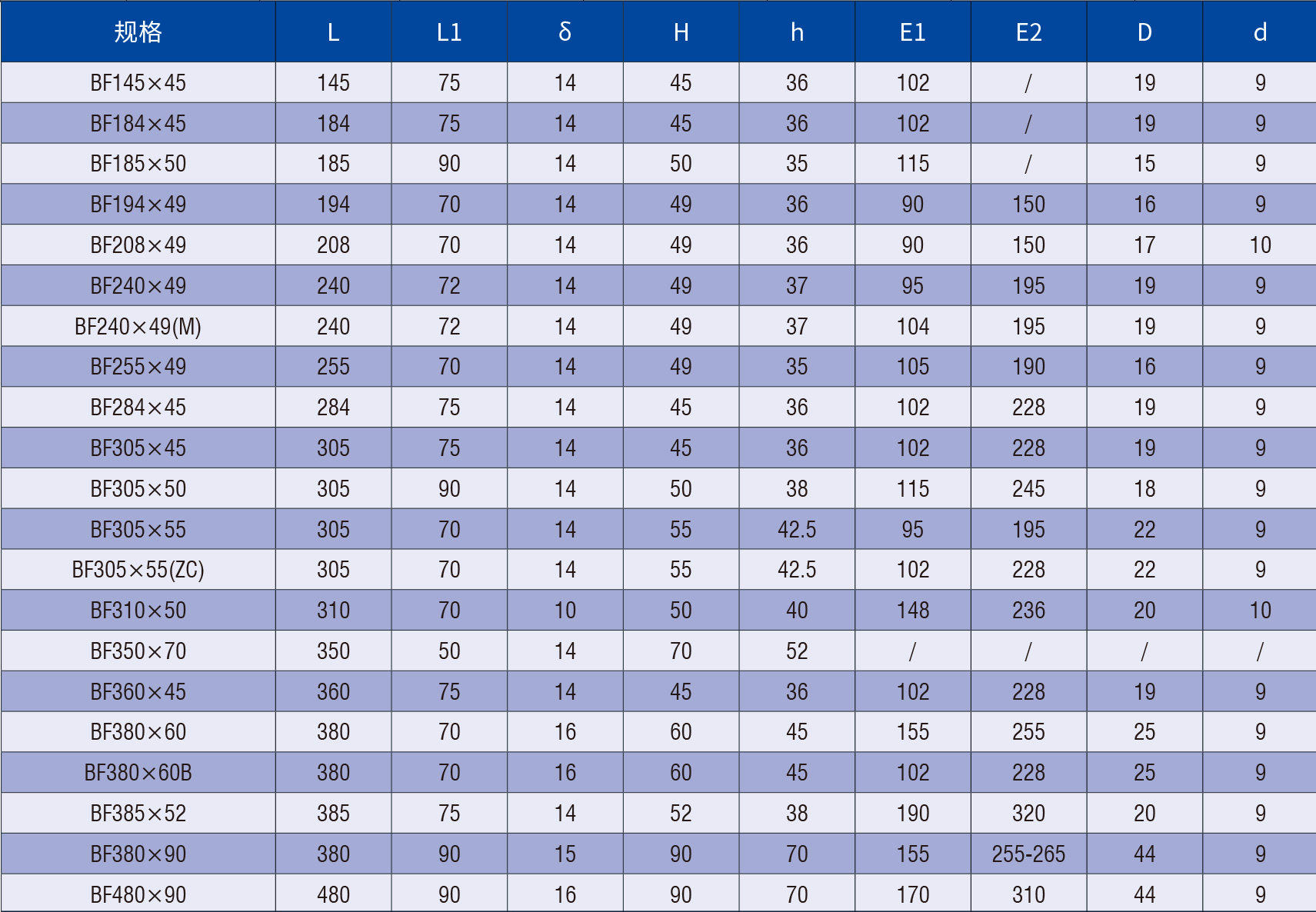 尼龙埋刮板(BF)规格表