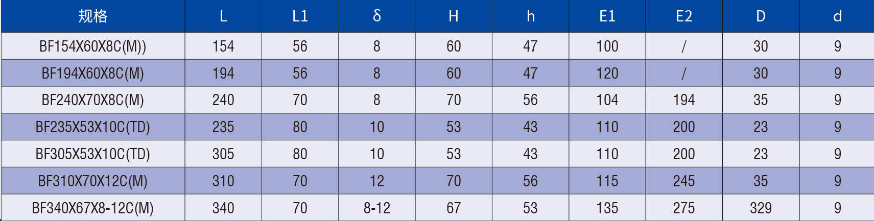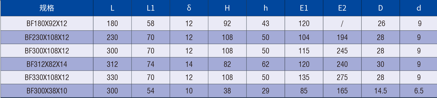 塑料埋刮板(BF)规格表