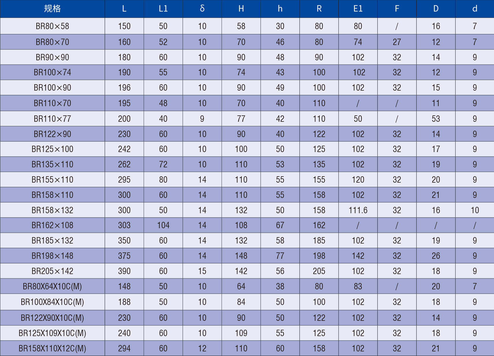 U型刮板(BR)规格表