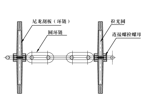 尼龙板安装间距均每隔四节安装一组,聚氨酯清扫刮板均每隔四节或六节尼龙刮板安装一片