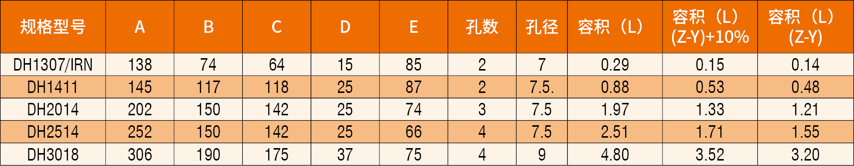备注:上述四个规格DH1411~3018斗为国外用户特殊定制,安装孔处均带凸台(DH1307/IRN除外),故孔距及孔径均不可调整。