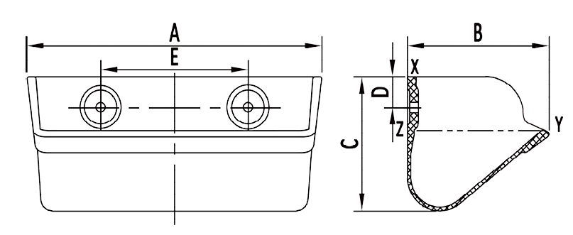 备注:上述DH斗安装孔处均为凹孔或带凸台(DH1814除外),故孔距及孔径均不可调整