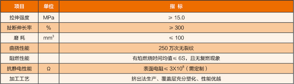 2、固有的抗油、耐水及耐腐蚀性能,且具有良好的阻燃及耐磨性能