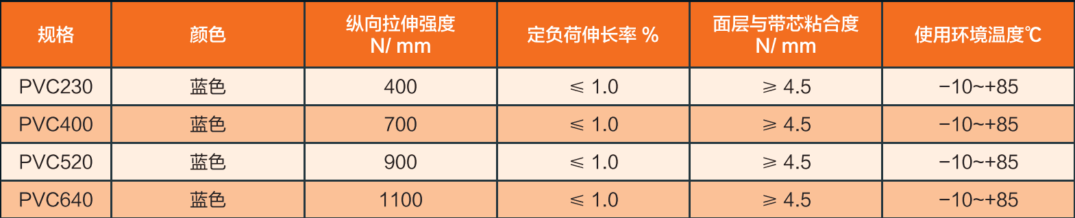 4、带体上下表面均为毛面,有良好的过辊性能,能保持较好的运行轨迹,不易跑偏。