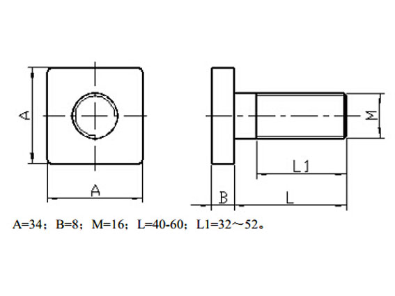 2、 方头螺栓M16X40,M16X60为标准配置,如需加长须订制。
