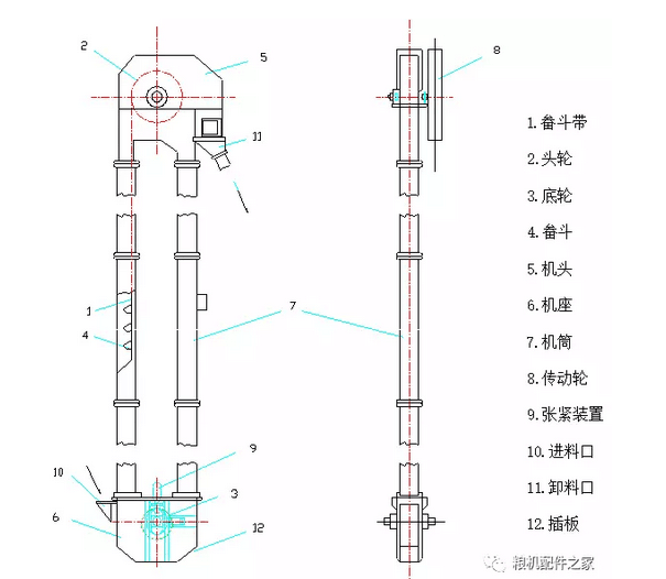 畚斗带:斗提机头,尾轮之间的牵引件。